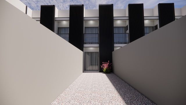 Localizado próximo de escola e comércio, em rua tranquila. O imóvel possui 72m², no piso superior 2 quartos sendo 1 com sacada. No pavimento térreo ambientes integrados entre sala e cozinha, área de serviço. Abertura de 3.6m, com espaço para 1 veículo e fundos com aproximadamente 1.5m. Previsão de entrega para dez 25.