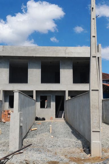 Localizado em ótima região do Bairro Aventureiro, tendo em suas proximidades comércio variado e escolas. Geminado planta baixa com 55m², contendo 2 quartos, ambientes integrados entre sala e cozinha. Espaço para 2 veículos, área de serviço nos fundos. Agende sua visita. Previsão de entrega para Abril de 2026
