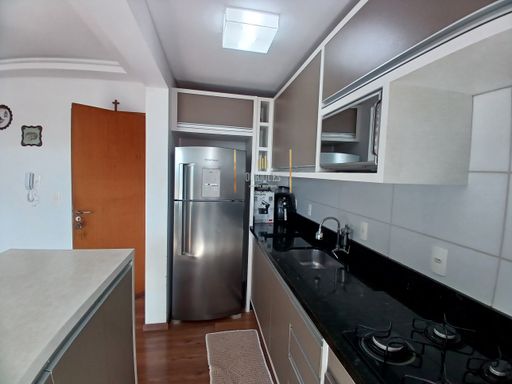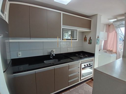 Apartamentos com 55m² priv. 2 quartos, ambientes integrados entre sala e cozinha, sacada com churrasqueira e 1 vaga de garagem coberta.