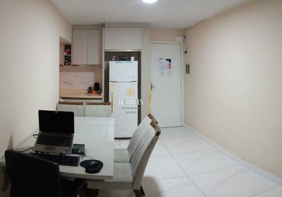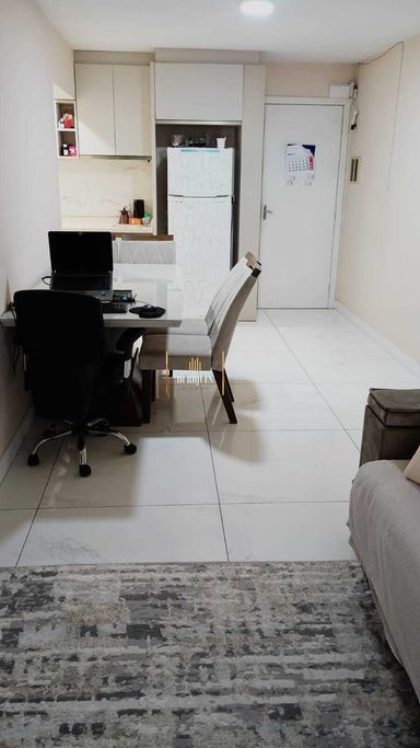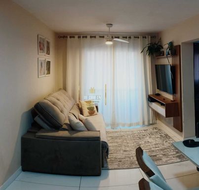 Apto com 54m², possui ambientes integrados entre sala e cozinha, sacada, 2 quartos bem arejados e 1 banheiro social.