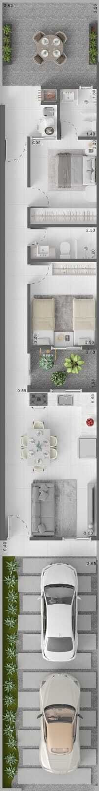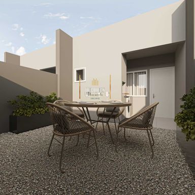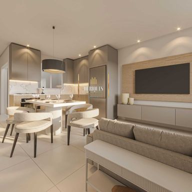 O empreendimento possui 2 quartos sendo 1 suíte, ambientes integrados entre sala e cozinha, área de serviço e espaço para 2 veículos.