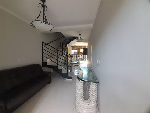 Geminado semimobiliado com 56m², no piso superior 2 quartos sendo 1 suíte com sacada e banheiro social.