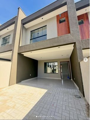 Casa com 4.20m de abertura, 115m², possui 3 quartos sendo uma suíte com ampla sacada.