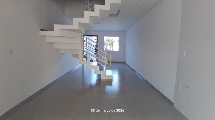 O imóvel com 105m², possui no piso superior 3quartos sendo 1 suíte com sacada, banheiro social.