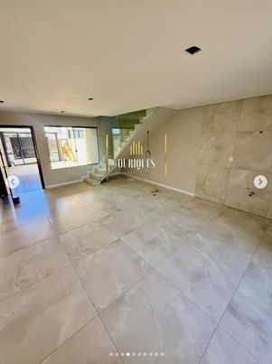 No pavimento térreo ambientes integrados entre sala e cozinha, lavabo e área de serviço.